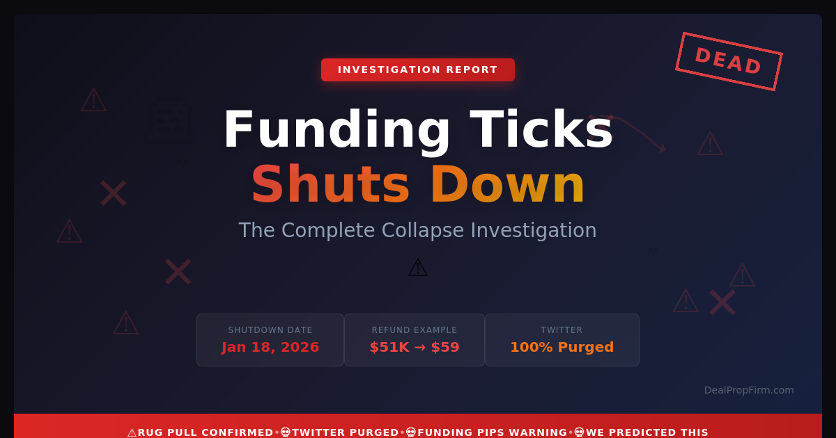 On January 18, 2026, Funding Ticks officially announced they are "winding down operations" — corporate speak for what the trading community is calling exactly what it is: a rug pull that leaves hundreds of traders holding the bag.